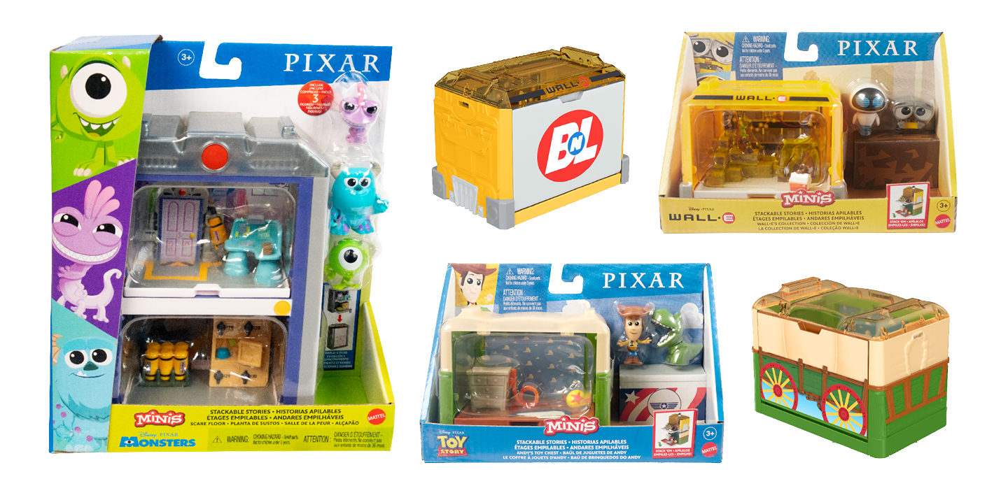 “Pixar Minis” is a Mattel owned line of 1-2” figures that has been around since 2016 and is still going strong in 2024! As my first solo design project I was tasked with finding a new way to expand the line beyond blingbags and movie packs, and the result was “Stackable Stories”; a mini movie scene to play and display your adorable Pixar Minis in.